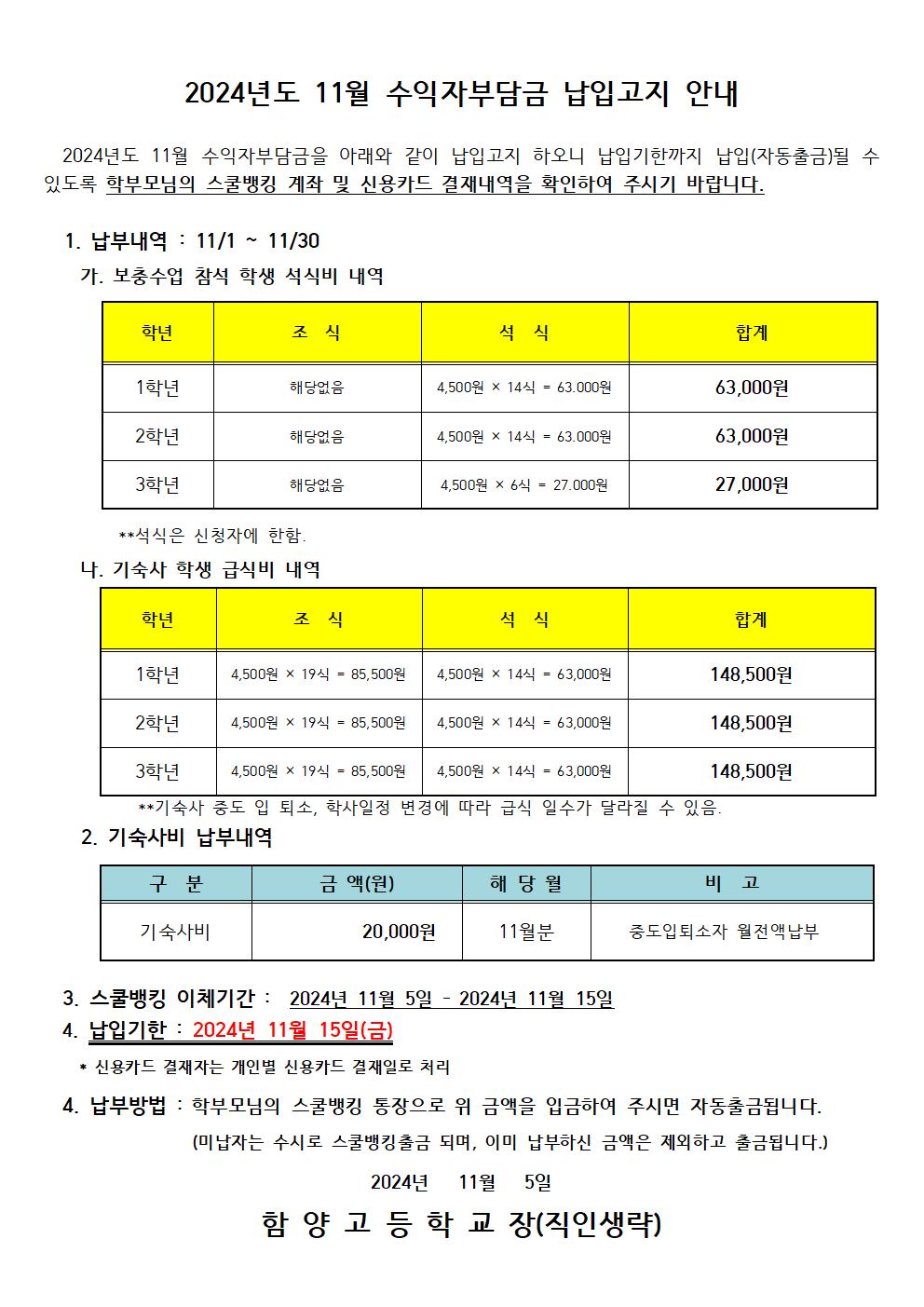 2024년 11월 수익자부담금 출금안내