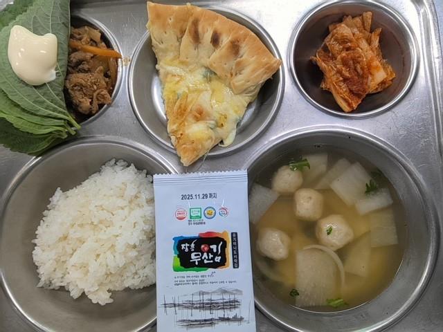 석식 친환경쌀밥 맑은어묵국(1.5.6.8.9.18) 불향주꾸미돈육볶음(5.6.10.13) 직접담은김치(자율)(9) 고르곤졸라피자(1.2.5.6) 주꾸미전용깻잎쌈(1.5)