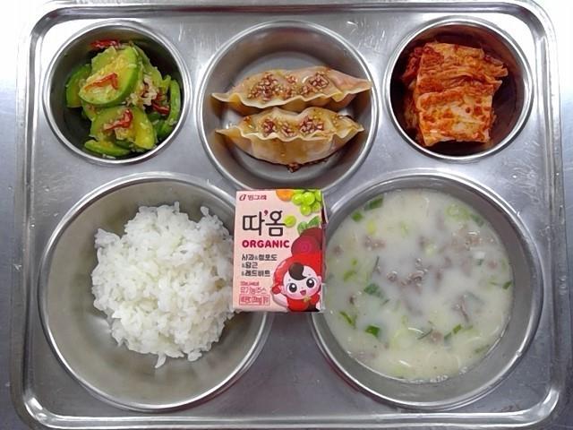 조식 친환경쌀밥 한우설렁탕&소면(2.5.6.16) 김치왕교자만두&초간장(5.6.13) 애호박나물(자율)(9) 직접담은김치(자율)(9) 오가닉주스(사과&청포도)(13)