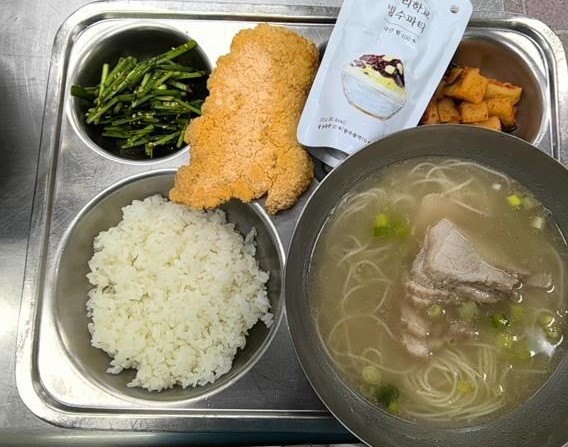 중식 친환경쌀밥 뜨끈한돼지국밥&소면(5.6.9.10) 부추겉절이 크리스피대만식지파이&시즈닝(1.2.5.6.13.15.16) 직접담은깍두기(자율)(9) 마시는빙수(1.2.5)
