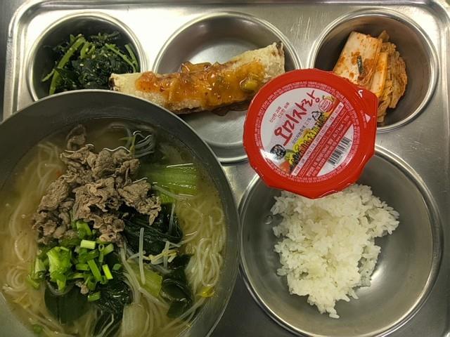 석식 미니밥(자율) 양지쌀국수 (5.6.8.9.15.16.18) 취나물무침(자율) (5.6) 불고기넴롤짜조&칠리소스 (1.5.6.10.12.13.16) 직접담은김치(자율) (9) 오미자주스