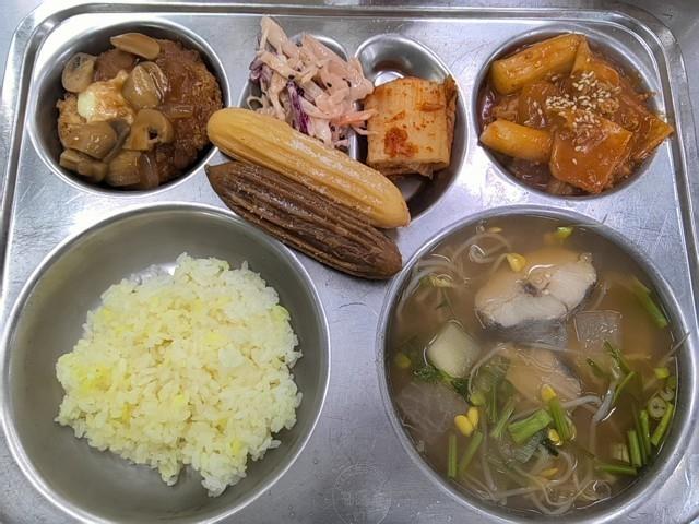 중식 강황쌀밥 동태매운탕(5.6.8.9.18) 양배추샐러드(1.5.12) 분모자떡볶이(1.5.6.8.9.10.12.13.18) 치즈폭탄등심돈까스&소스(1.2.5.6.10.12.13.16.18) 직접담은김치(자율)(9) 슈크림&초코츄러스(1.2.5.6.13)