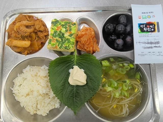 중식 찰현미밥 맑은콩나물국(5.8.9.18) 달걀찜(1) 불향주꾸미돈육볶음(5.6.10.13) 직접담은김치(자율)(9) 주꾸미전용깻잎쌈(1.5) 포도(거봉) → 계절적 요인에 따라 포도(거봉) 수급 불가하여, 씨없는 적포도로 대체하여 제공합니다.
