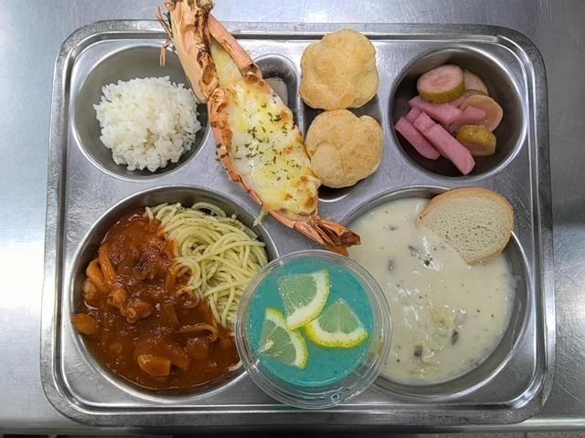 중식 미니밥(자율) 양송이스프&바게트(2.5.6.13.15.16) 상하이파스타(1.2.5.6.8.9.12.15.16.17.18) 메가블랙타이거새우구이(2.6.9.12.13.18) 무오이피클(완제)(자율)(5.6) 수제블루레몬에이드 화이트슈(1.2.5.6)